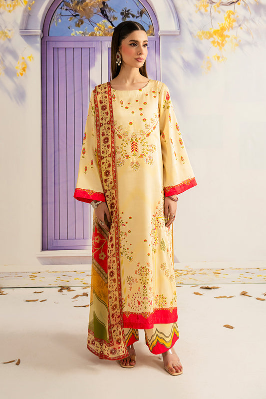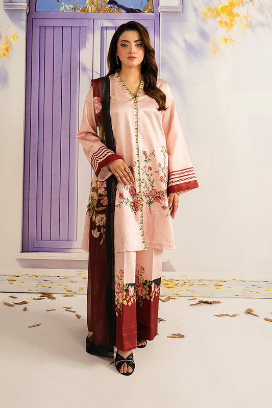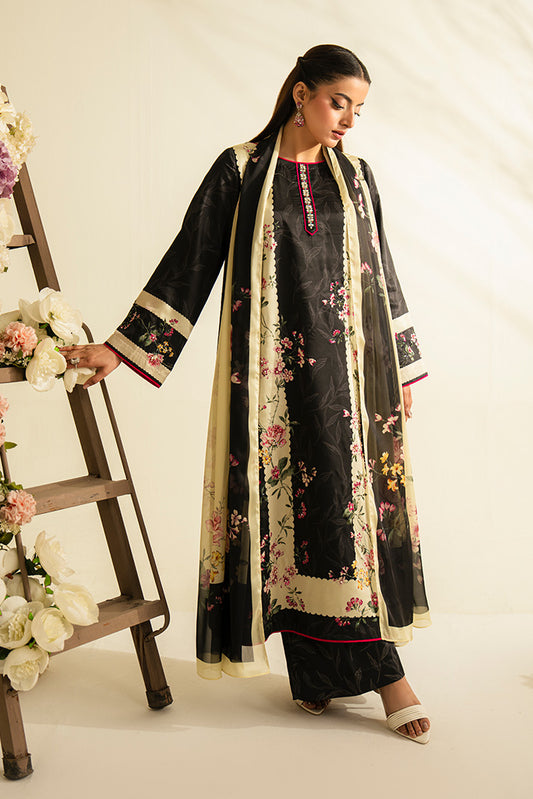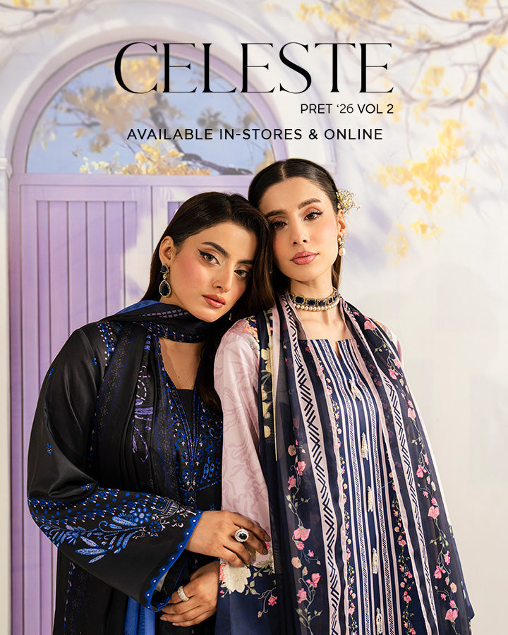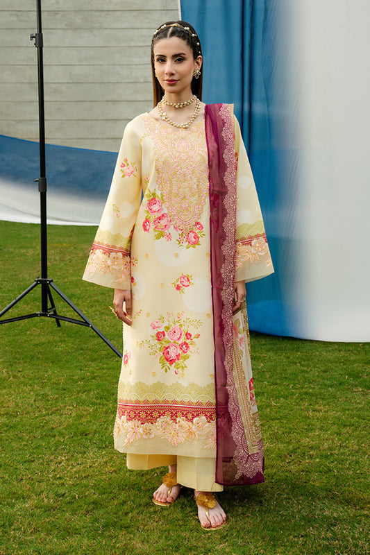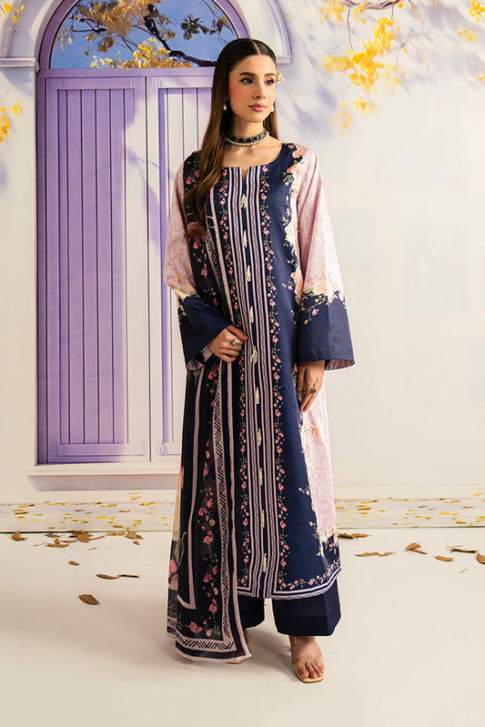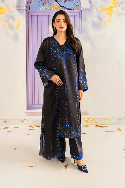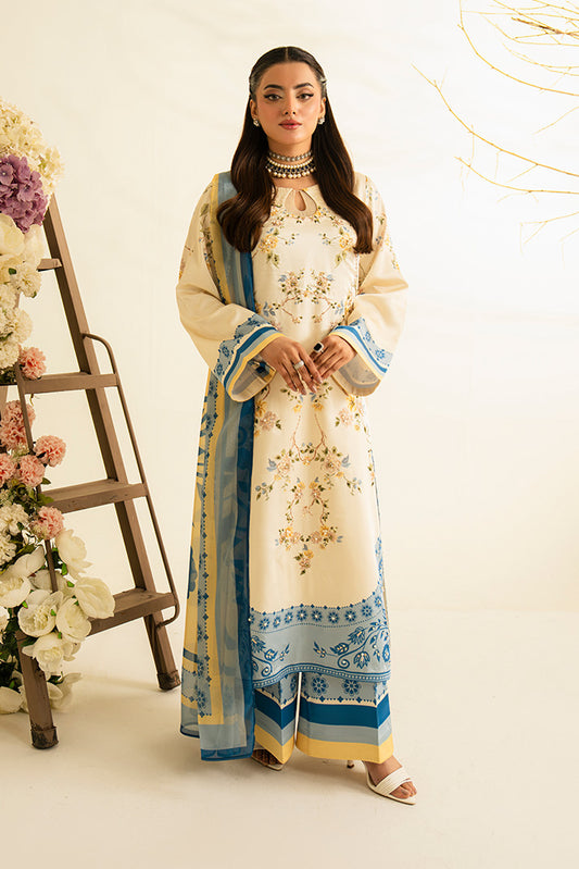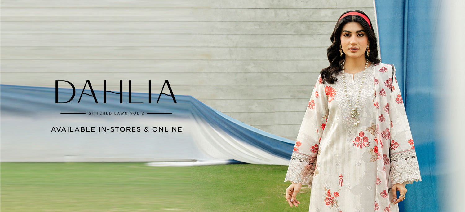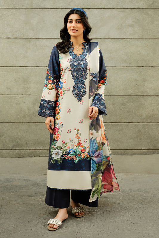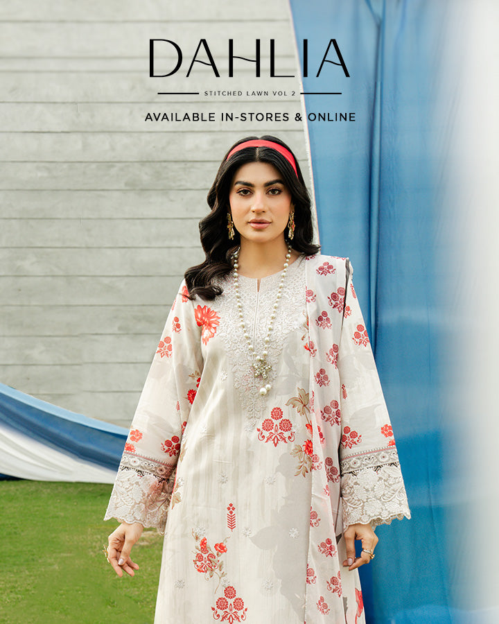 Printed lawn shirt enhanced with embroidered neckline detailing. Embroidered chiffon dupatta. Printed lawn trouser....