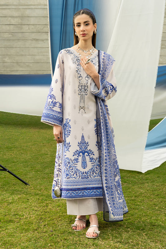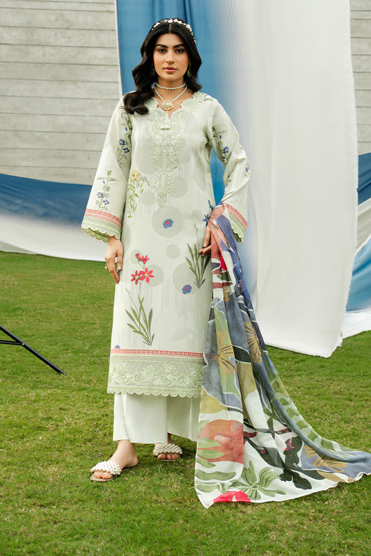 Printed lawn shirt with subtle embroidered motifs. Embroidered chiffon dupatta. Printed lawn trouser....