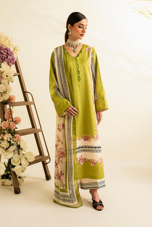 Printed silk shirt with detailed contrast embroidery.Printed silk dupatta with subtle coordinated design.Printed silk trouser...