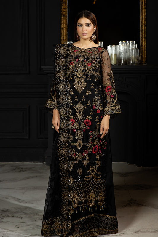 Embroidered & hand embellished net frontEmbroidered net backEmbroidered organza front back borderEmbroidered net sleevesEmbroidered organza...