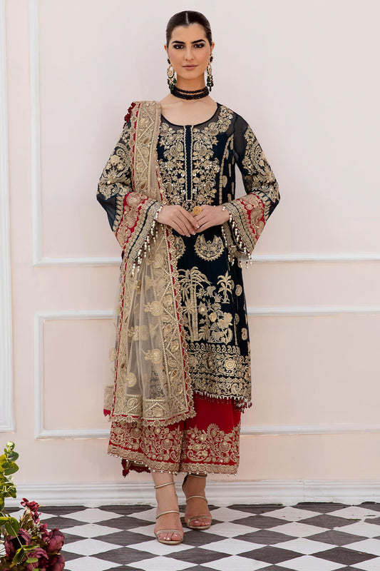 Embroidered & hand embellished chiffon frontEmbroidered chiffon backEmbroidered organza front back borderEmbroidered chiffon sleevesEmbroidered organza...