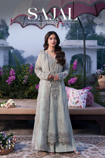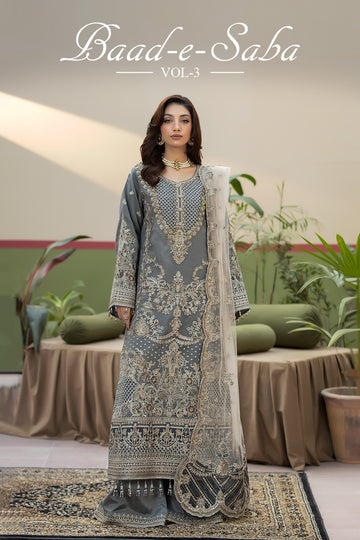 Embroidered pure bamber chiffon front embellished with handmade Plain pure bamber chiffon back Embroidered...