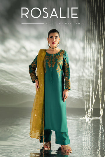 Embroidered Viscose shirt.Printed Silk Dupatta. Embroidered Viscose trouser. This design features a beautifully embroidered viscose...