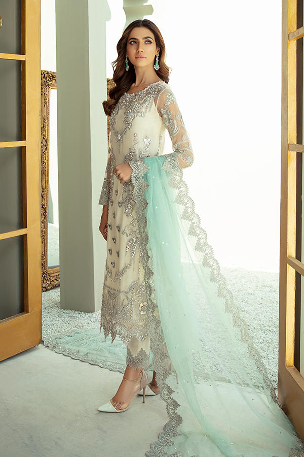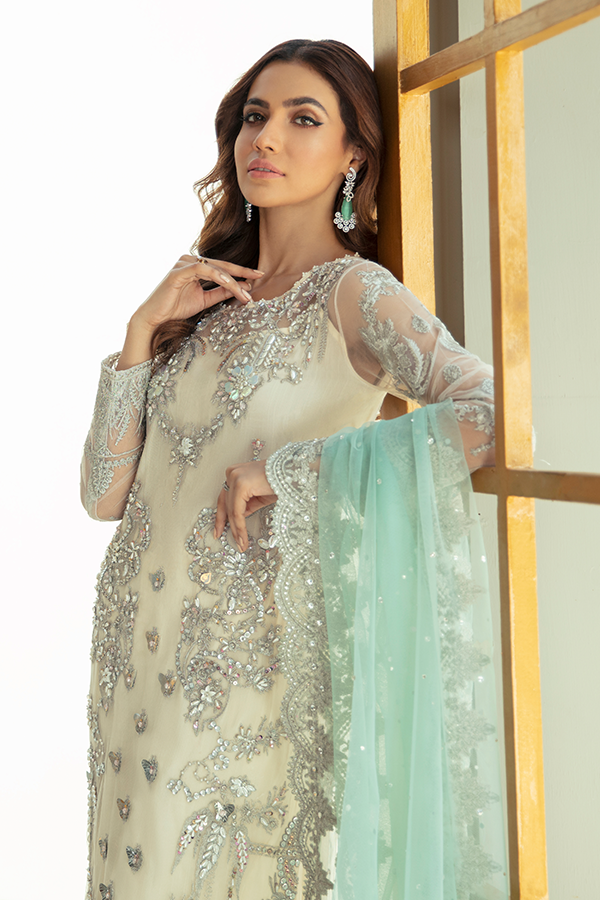 Embroidered net with handmade embellishments for front: 1 yard