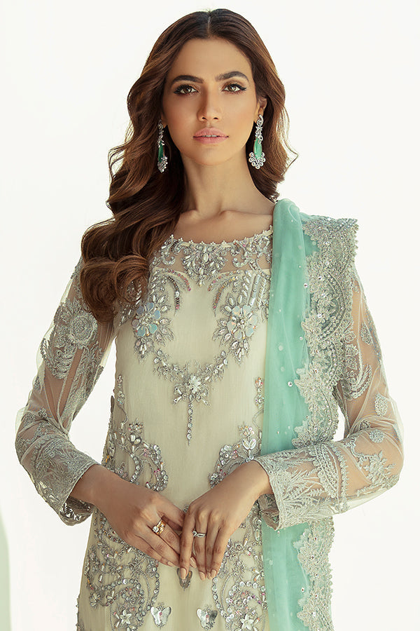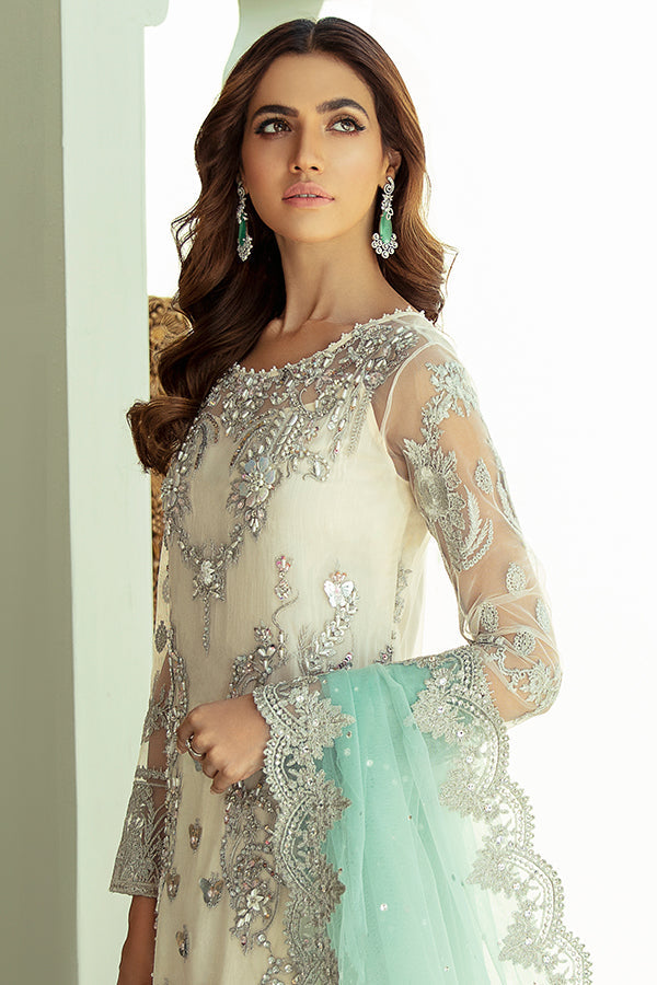 Embroidered net with stones embellishments for dupatta: