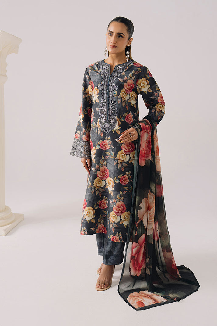 This look includes a printed lawn shirt detailed with fine embroidery for added texture. The printed chiffon dupatta enhances its graceful appeal, finished with a printed lawn trouser for a relaxed silhouette.