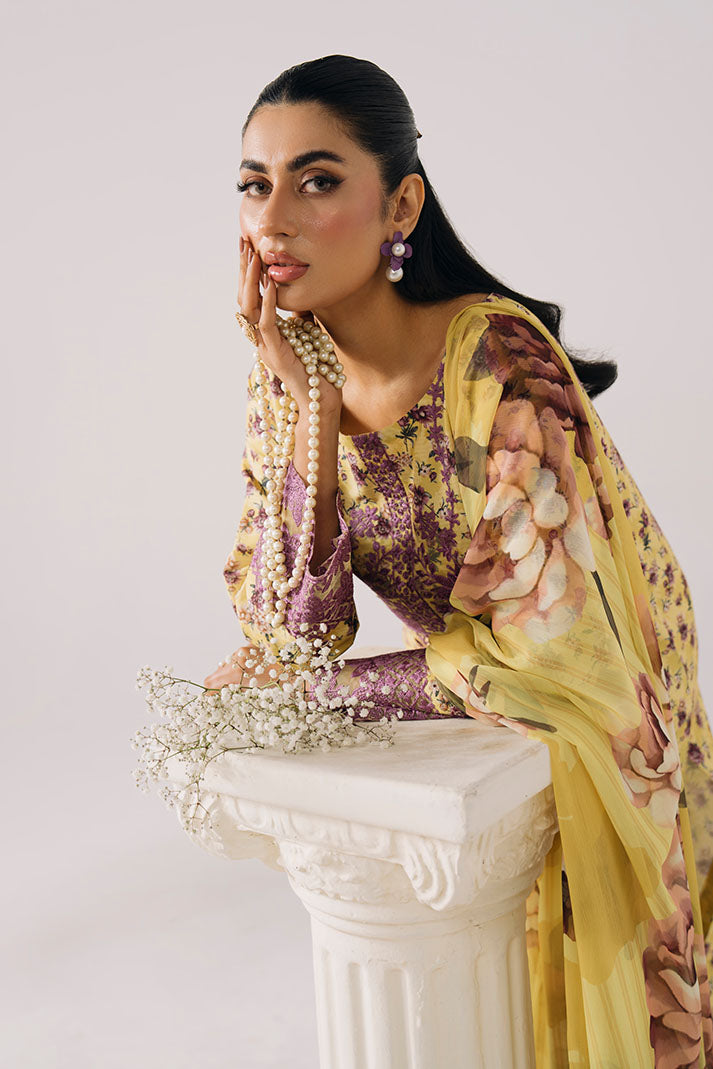 Crafted in printed lawn, the shirt features elegant embroidery for a timeless finish. The printed chiffon dupatta adds lightness and charm, paired with a printed lawn trouser for everyday comfort.