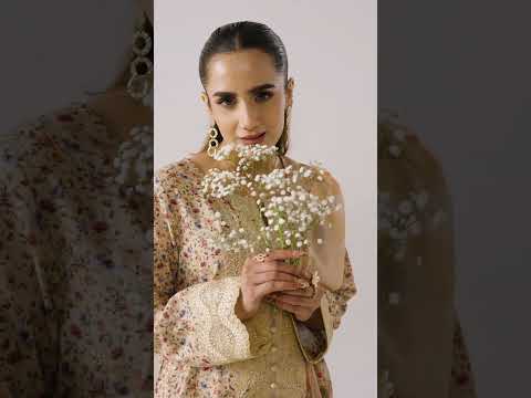 This outfit features a printed lawn shirt enhanced with delicate embroidery. A printed chiffon dupatta provides a soft, flowing drape, complemented by a printed lawn trouser for breathable wear.