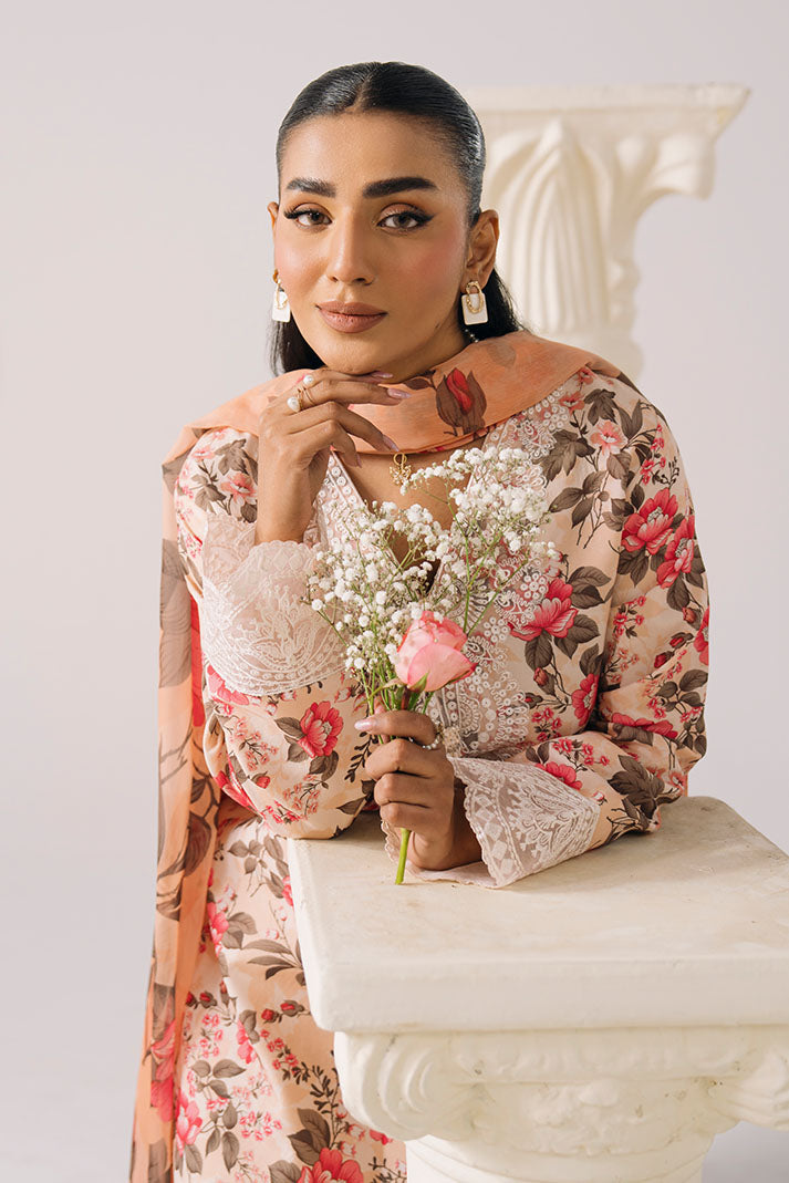 This peach lawn dress is a graceful blend of comfort and sophistication. The printed lawn shirt features tasteful embroidered accents that elevate the overall design. A soft printed chiffon dupatta adds an airy, flowing touch.