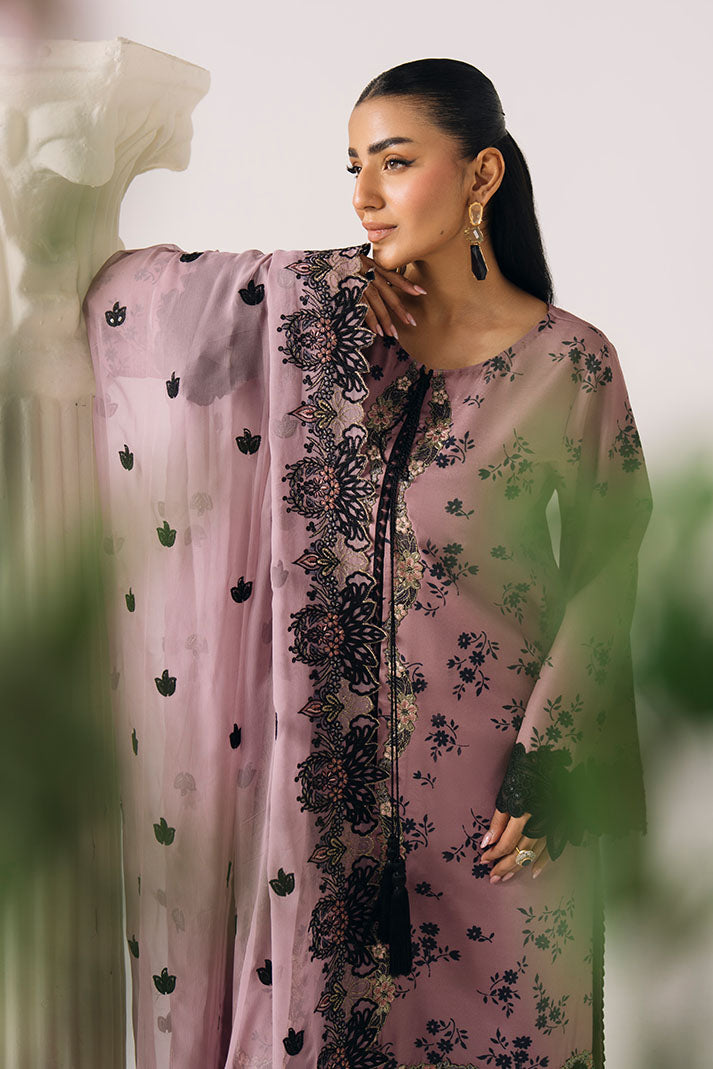 This ensemble includes a printed lawn shirt enhanced with delicate embroidery for a polished look. The embroidered chiffon dupatta adds softness and refinement, complemented by a printed lawn trouser that keeps the outfit light and wearable.
