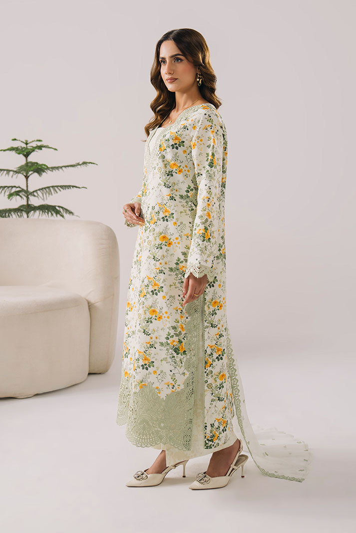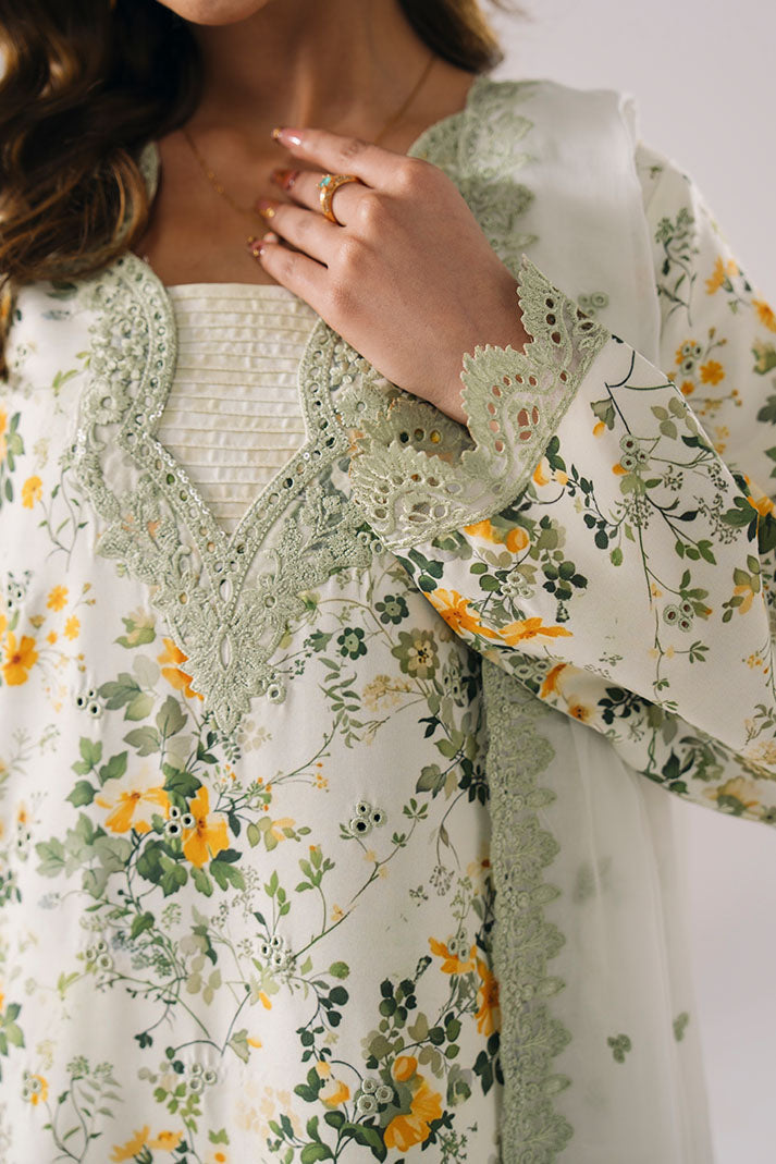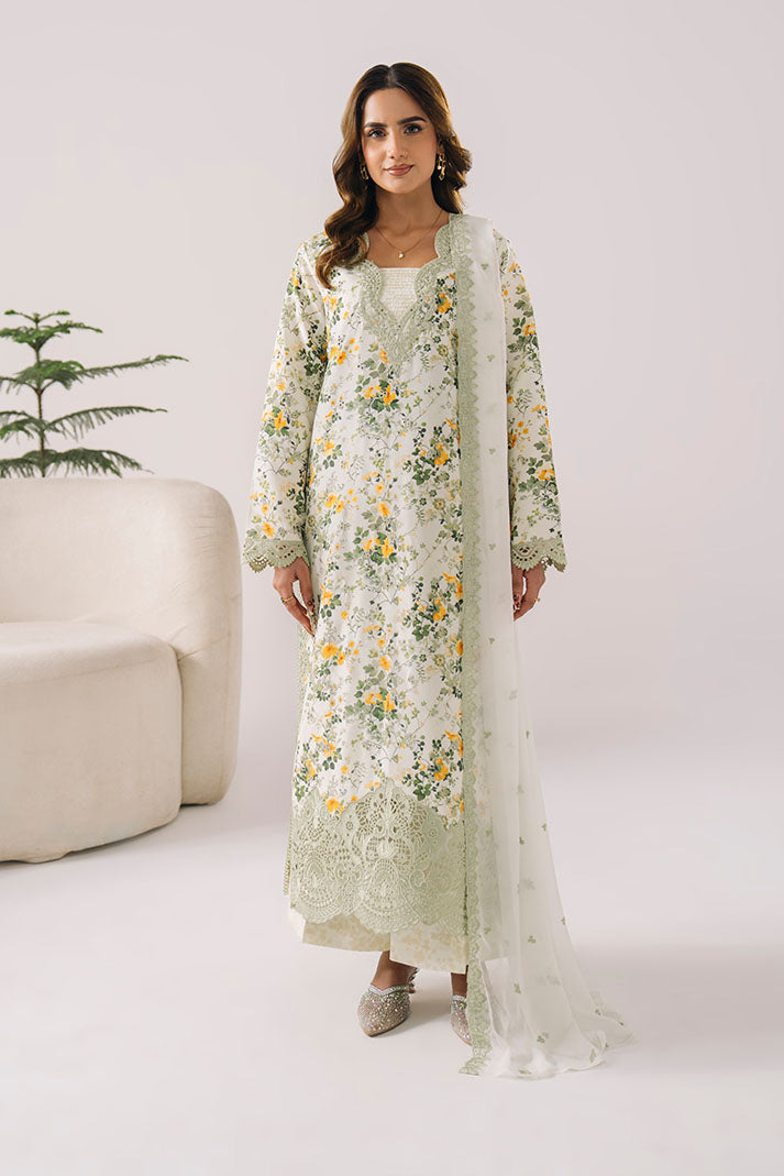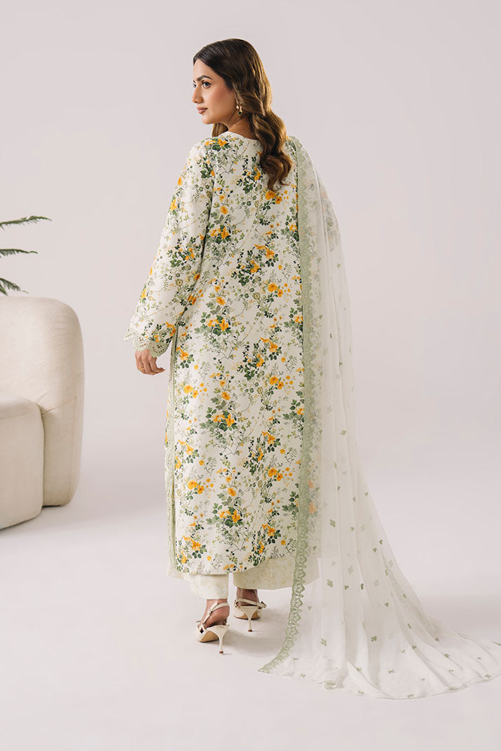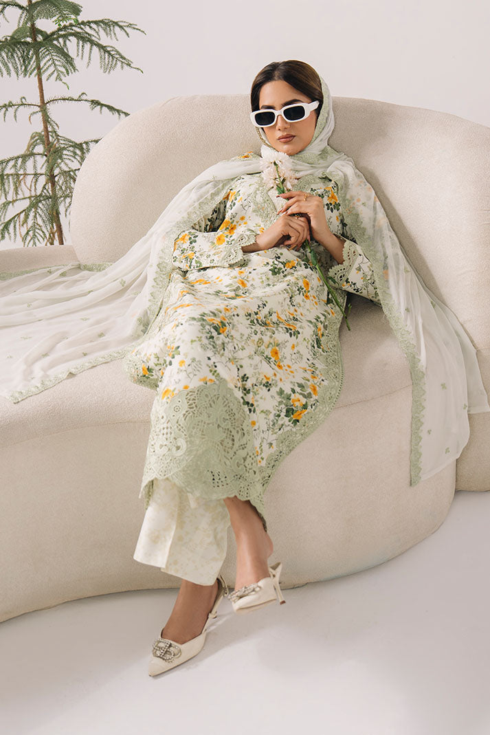 This outfit features a printed lawn shirt enhanced with fine embroidery for a feminine touch. The embroidered chiffon dupatta offers an airy finish, paired with a printed lawn trouser for effortless styling.