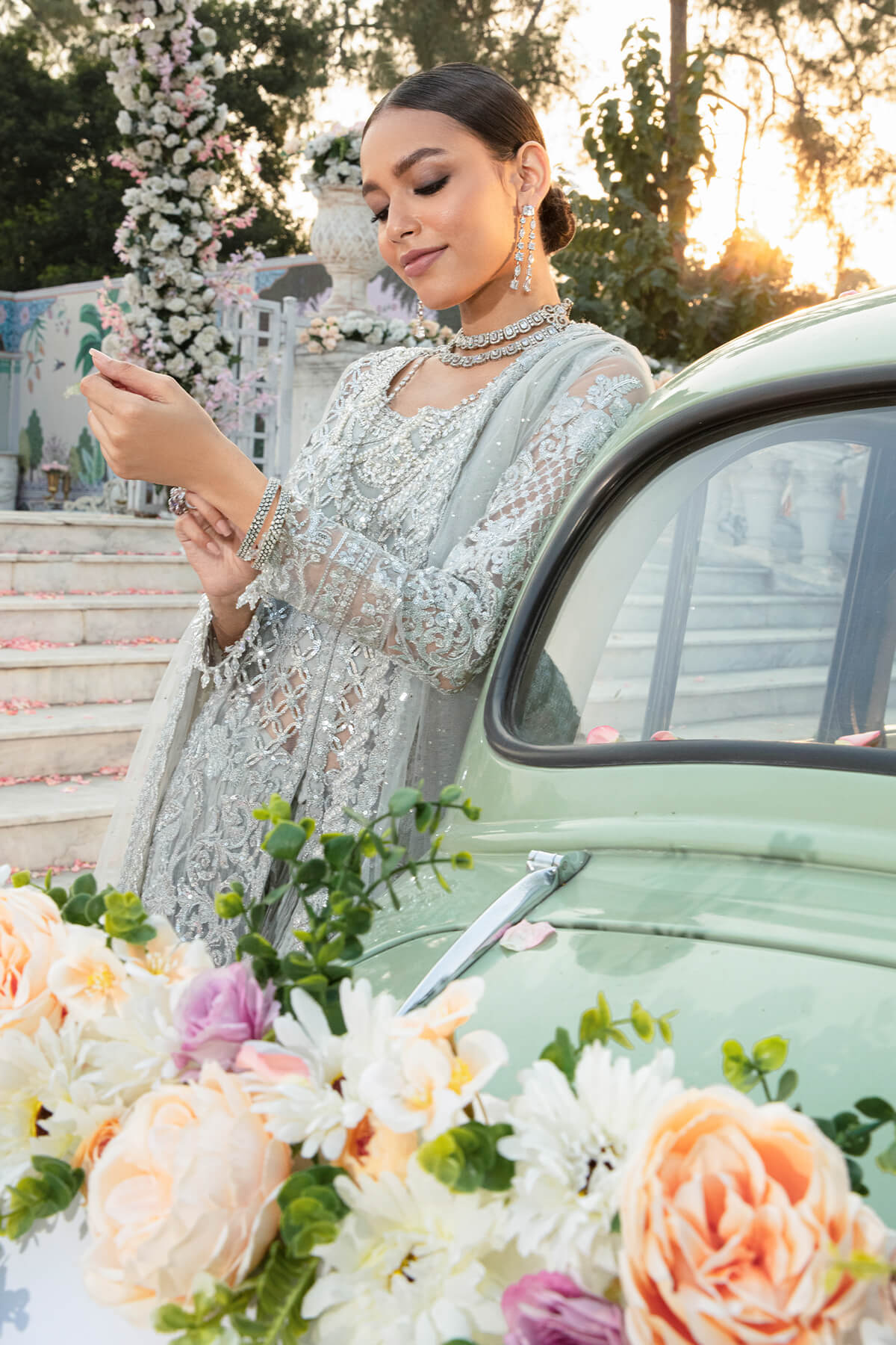 Embroidered organza sharara border